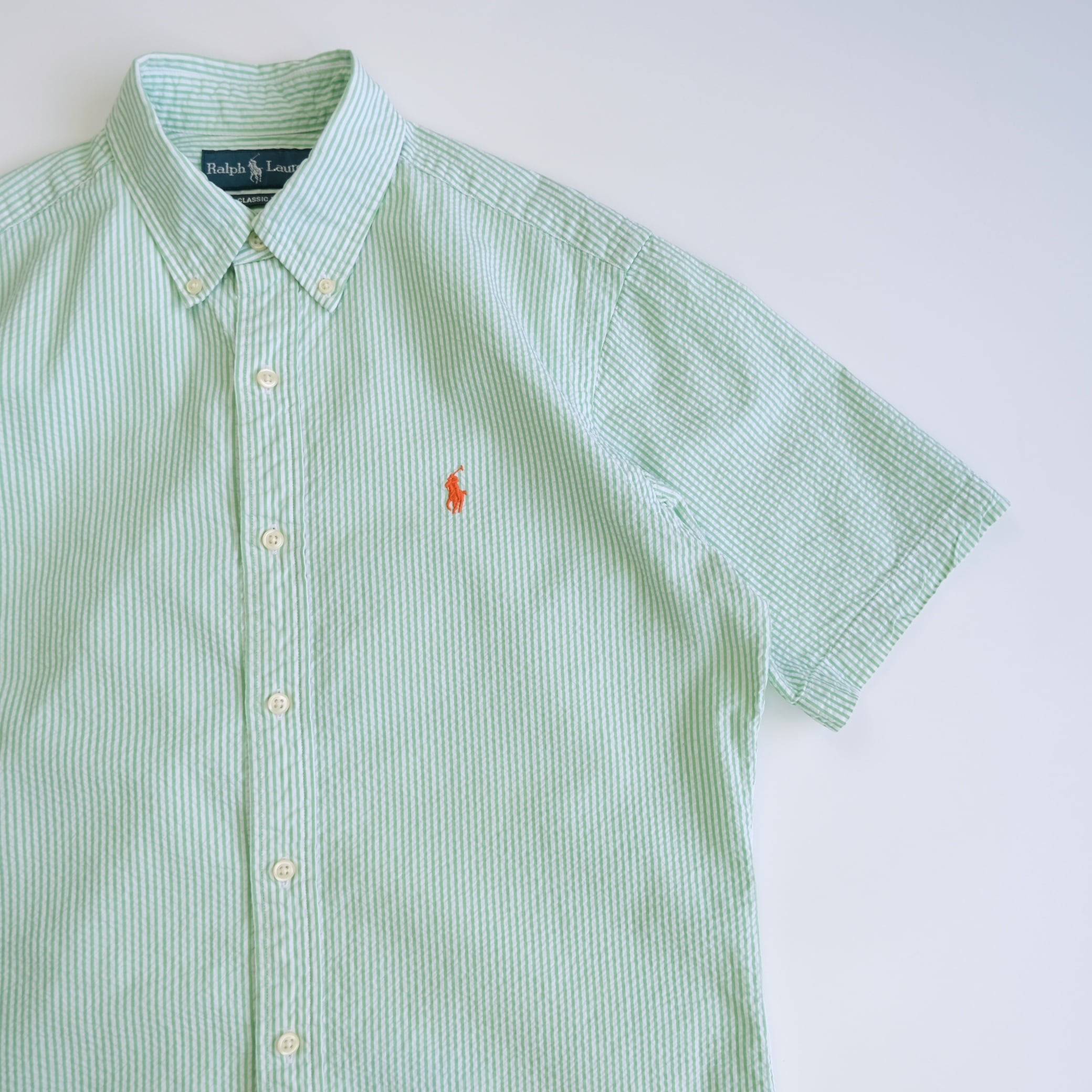 「ラルフローレン」の半袖BDストライプシアサッカーシャツです。