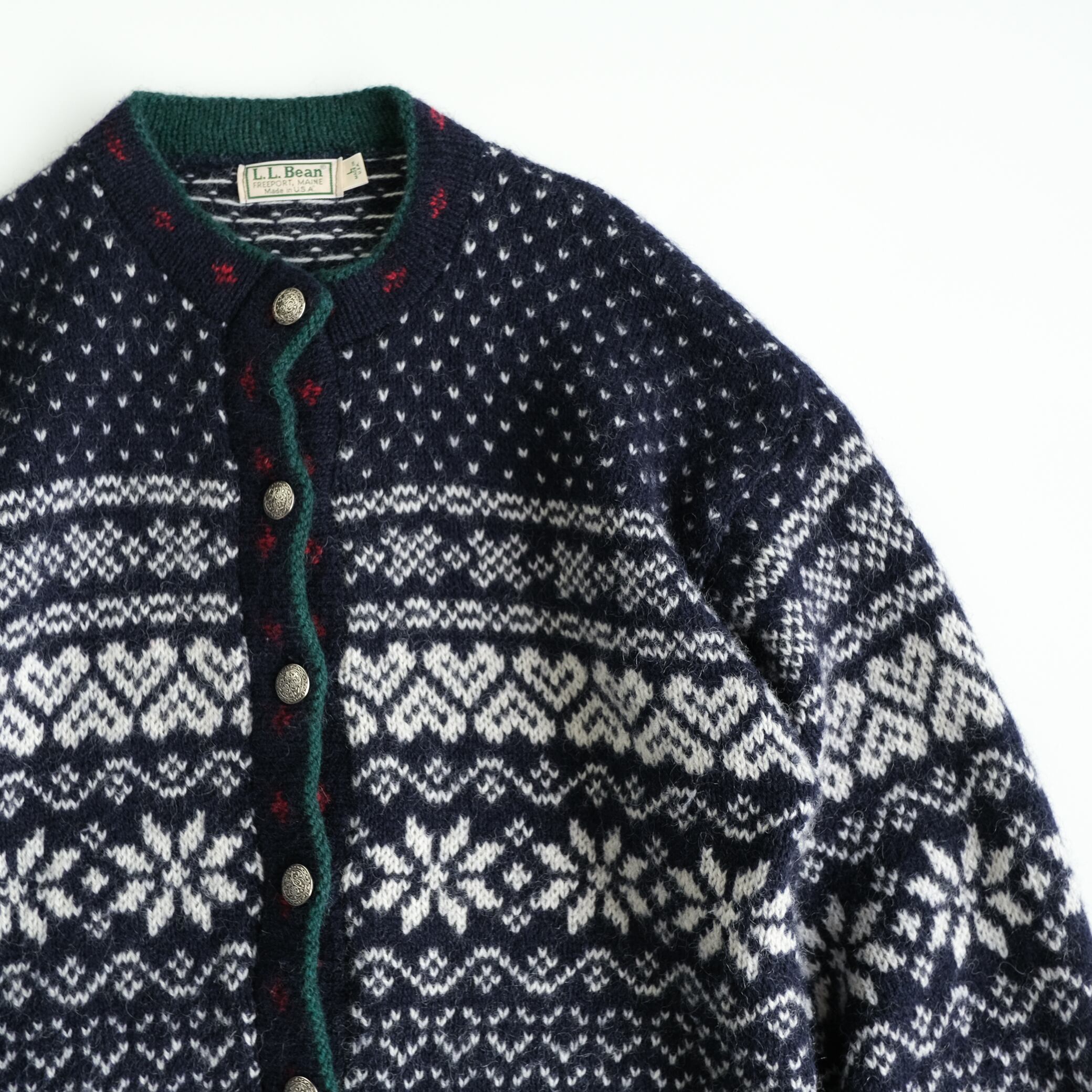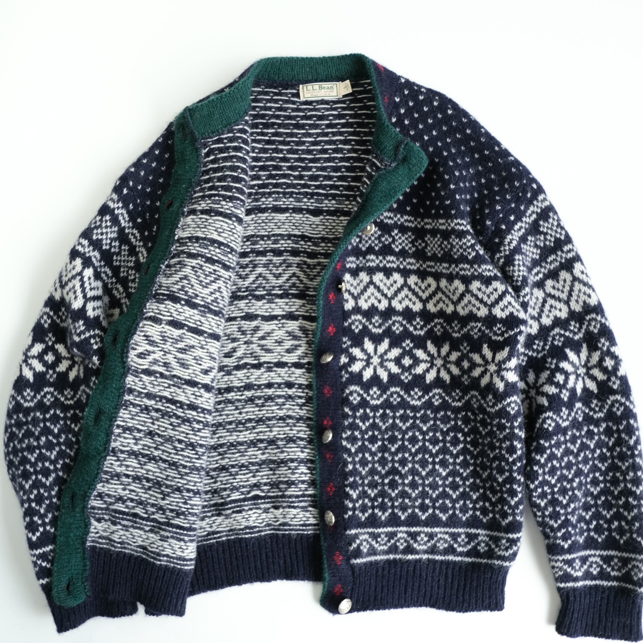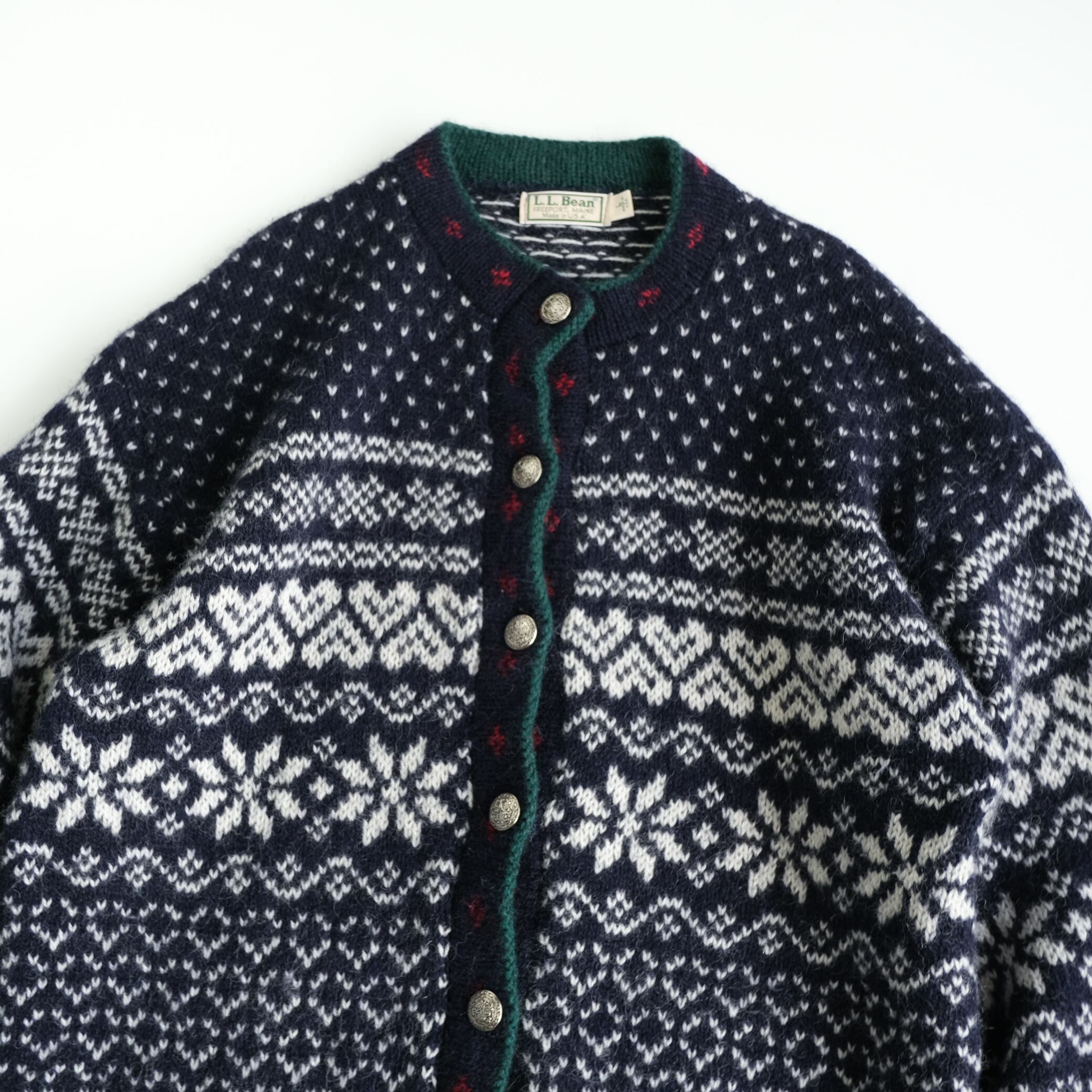 「エルエルビーン」USA製80年代頃の総柄ノルディックカーディガンです。