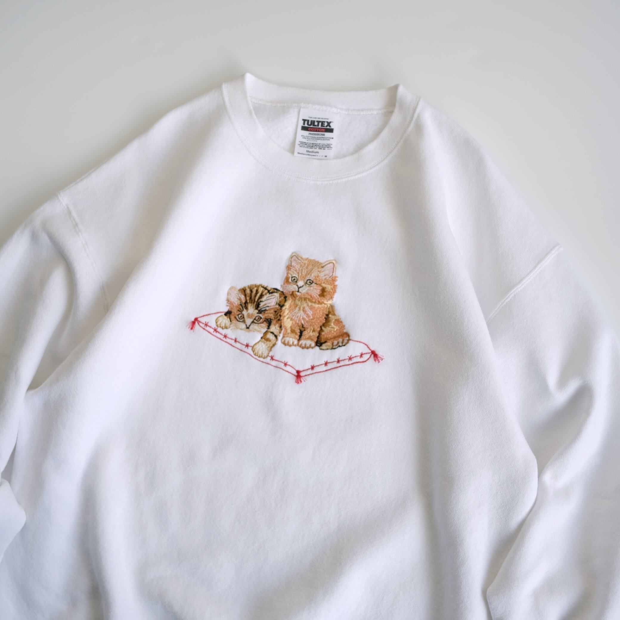 【TULTEX】90's Cat Embroidery Sweatshirt White M