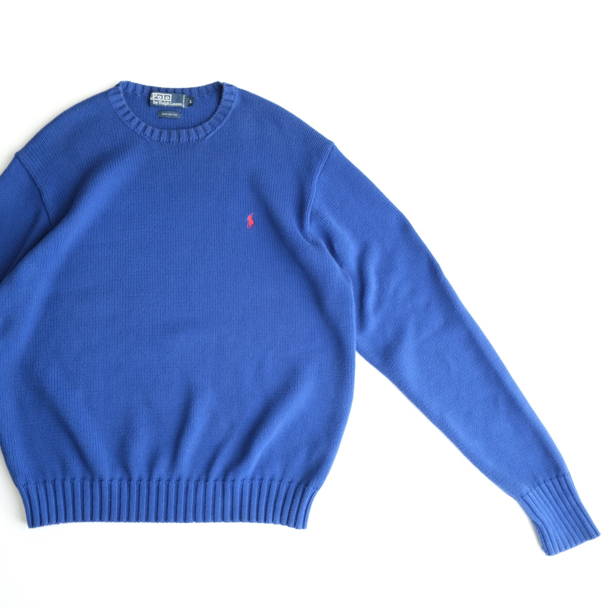 【Polo by Ralph Lauren】Cotton Crew Neck Knit Blue L