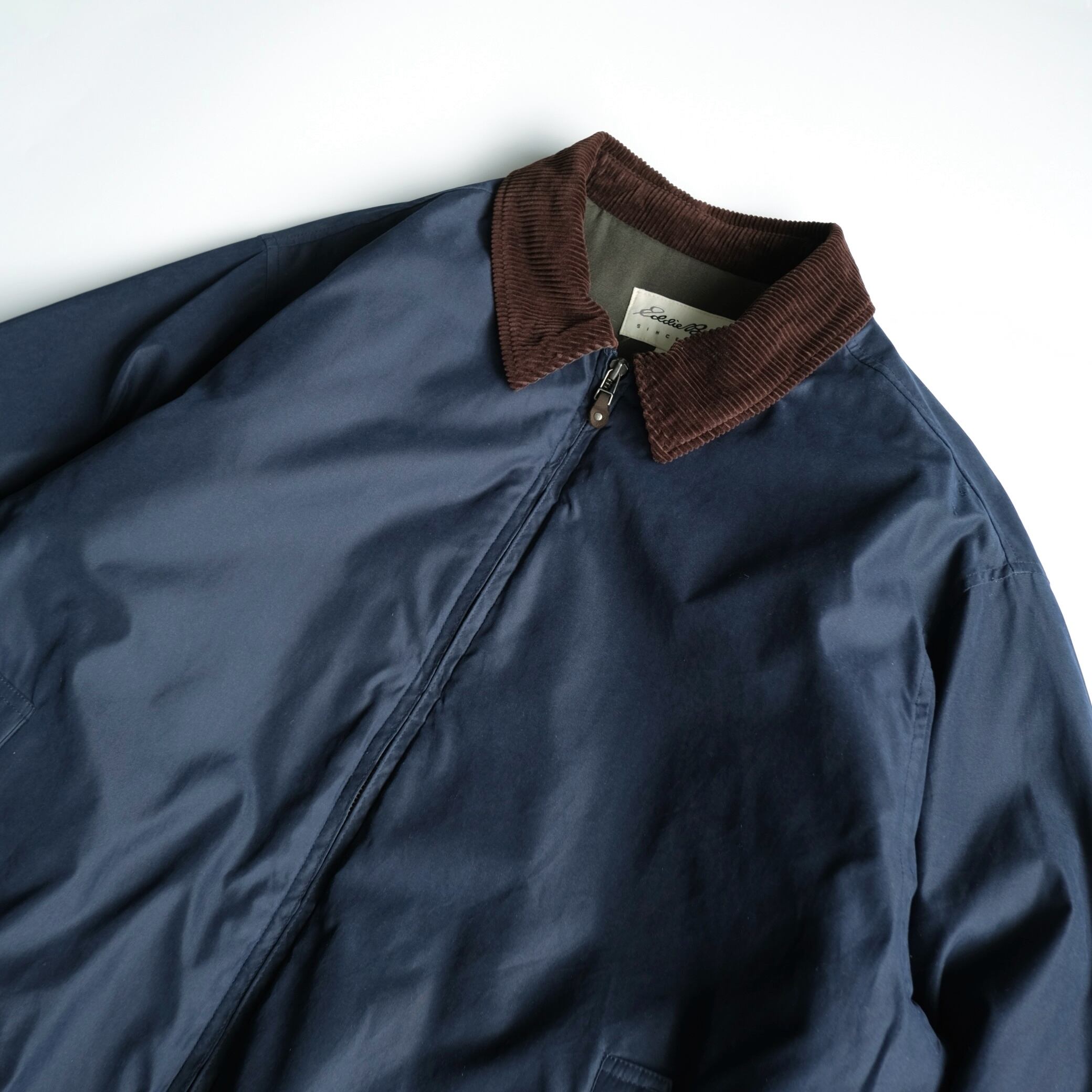 【Eddie Bauer】90's Corduroy Collar Padded Zip Up Jacket Navy XL