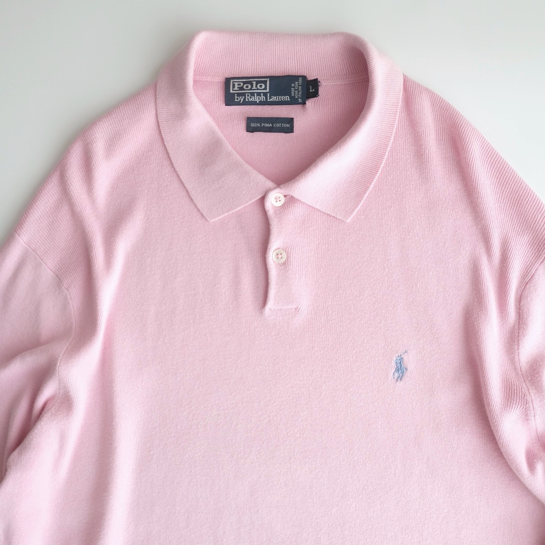 【Polo by Ralph Lauren】90's L/S Knit Polo shirt Pink L