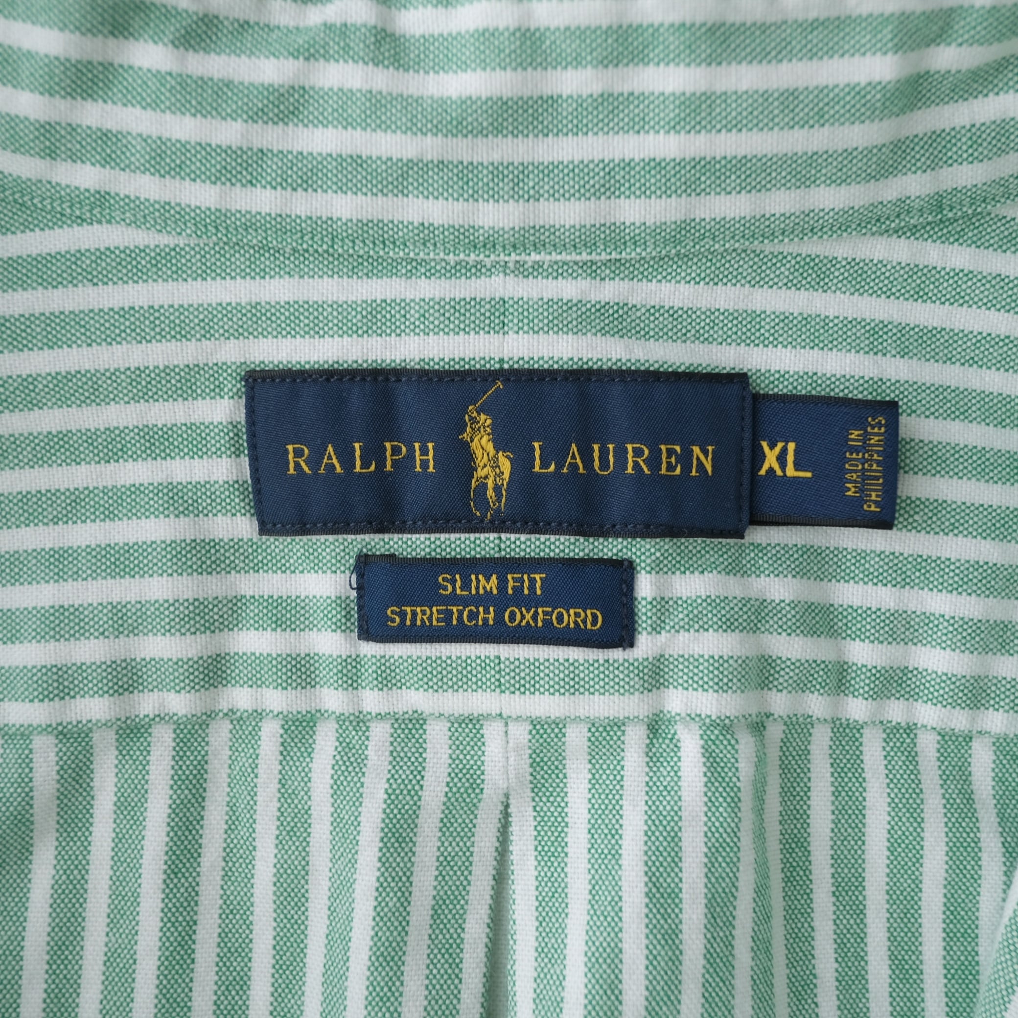 【Ralph Lauren】L/S B.D Striped Shirt Green White XL