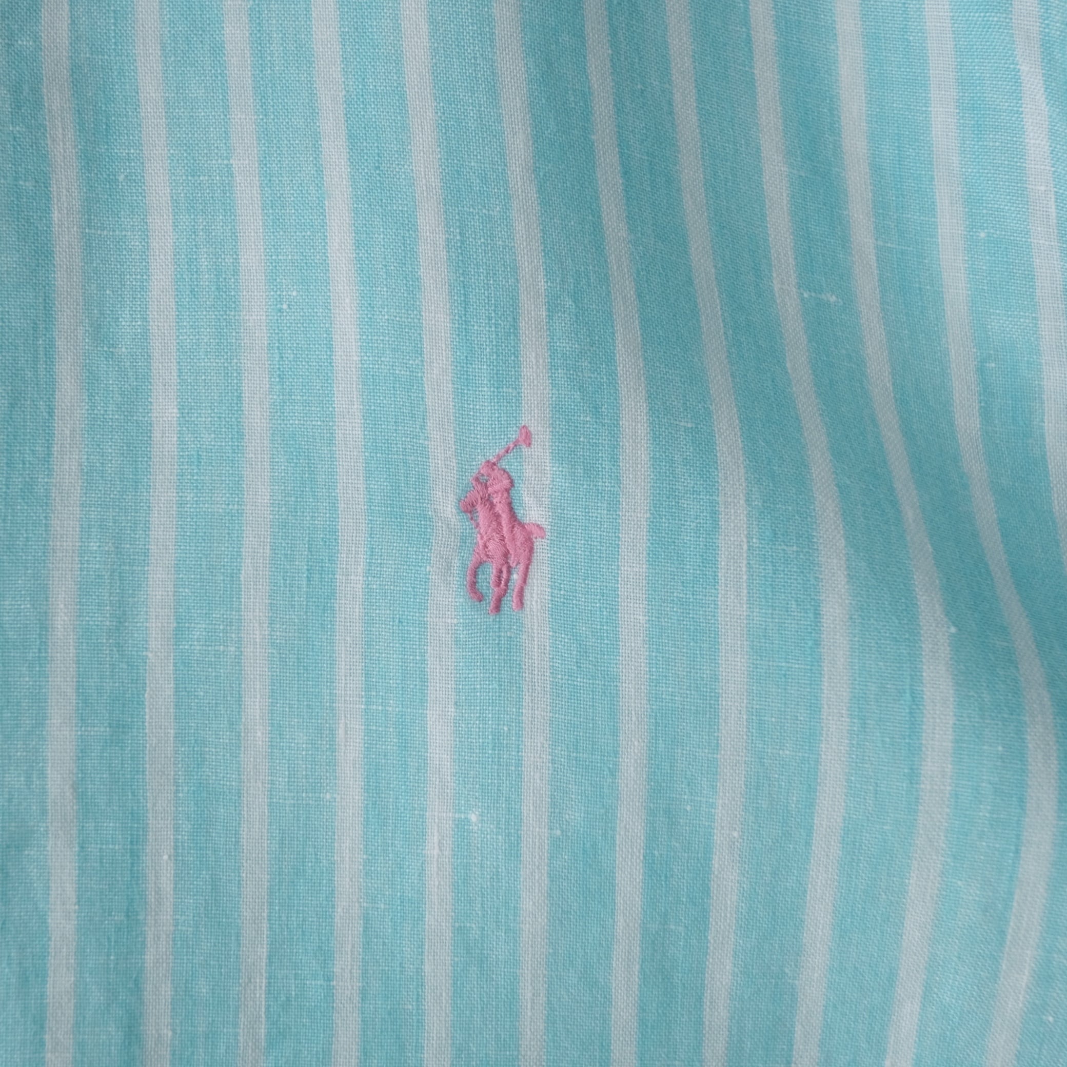 【Ralph Lauren】L/S B.D Linen Striped Shirt Blue XL
