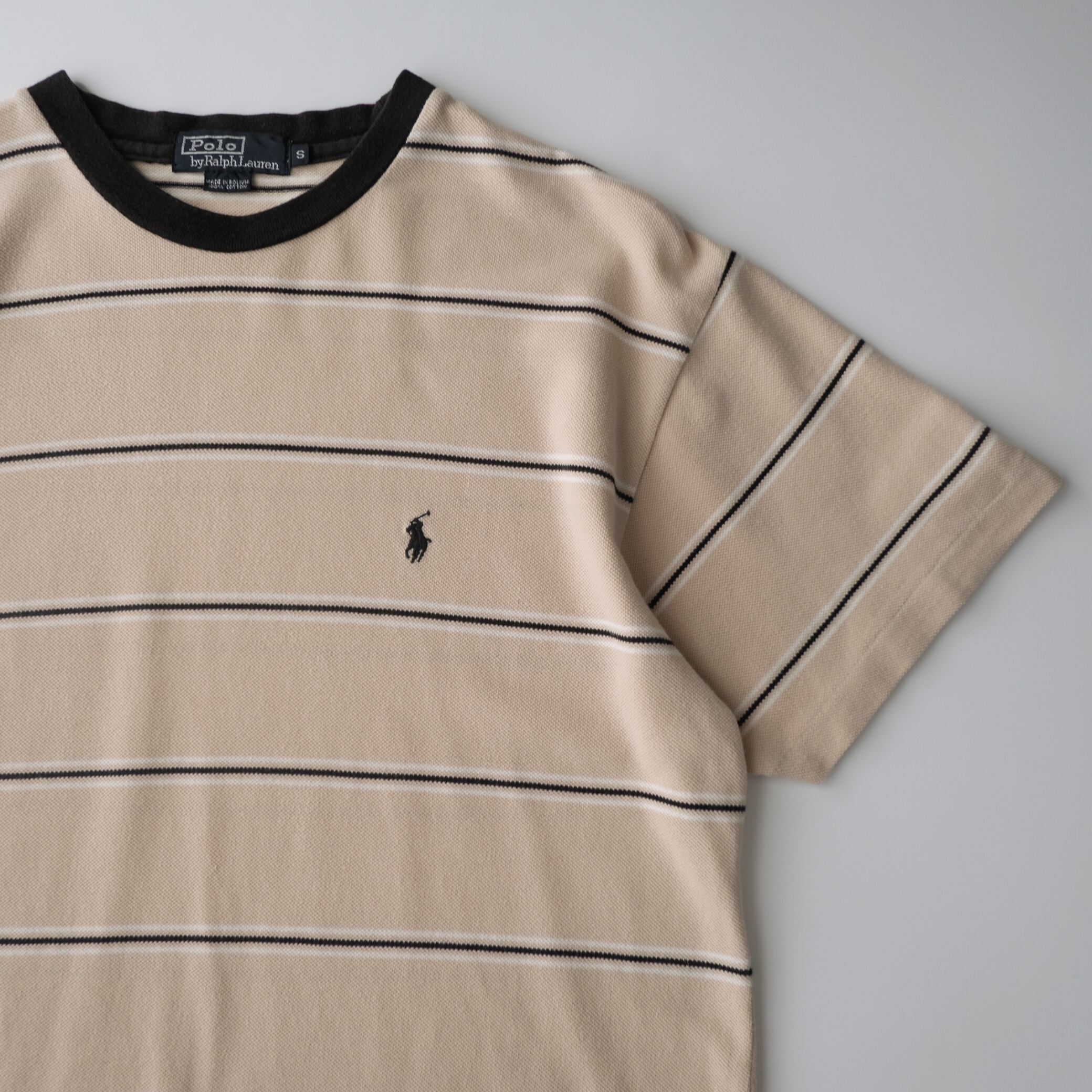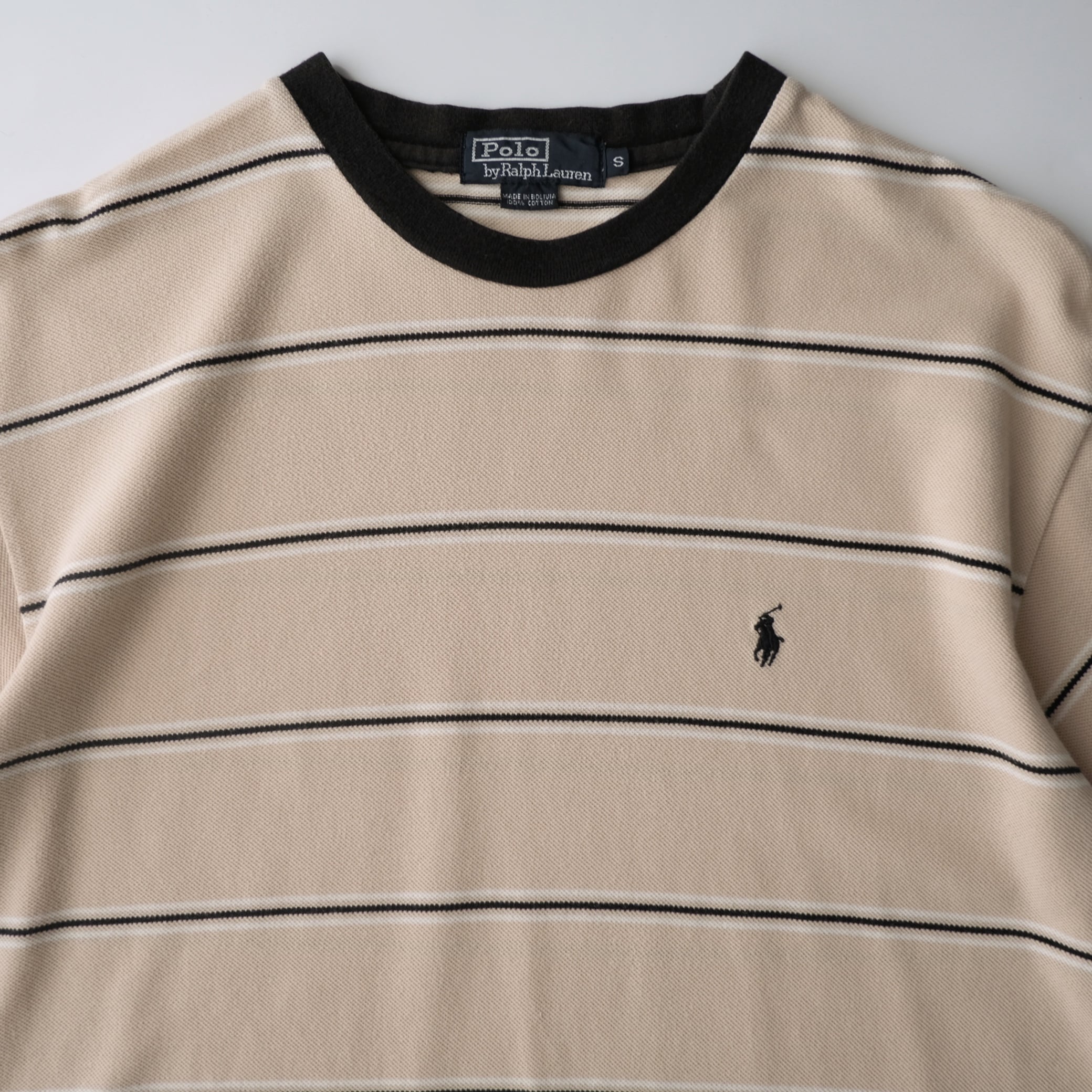 【Polo by Ralph Lauren】Striped T-Shirt Beige S