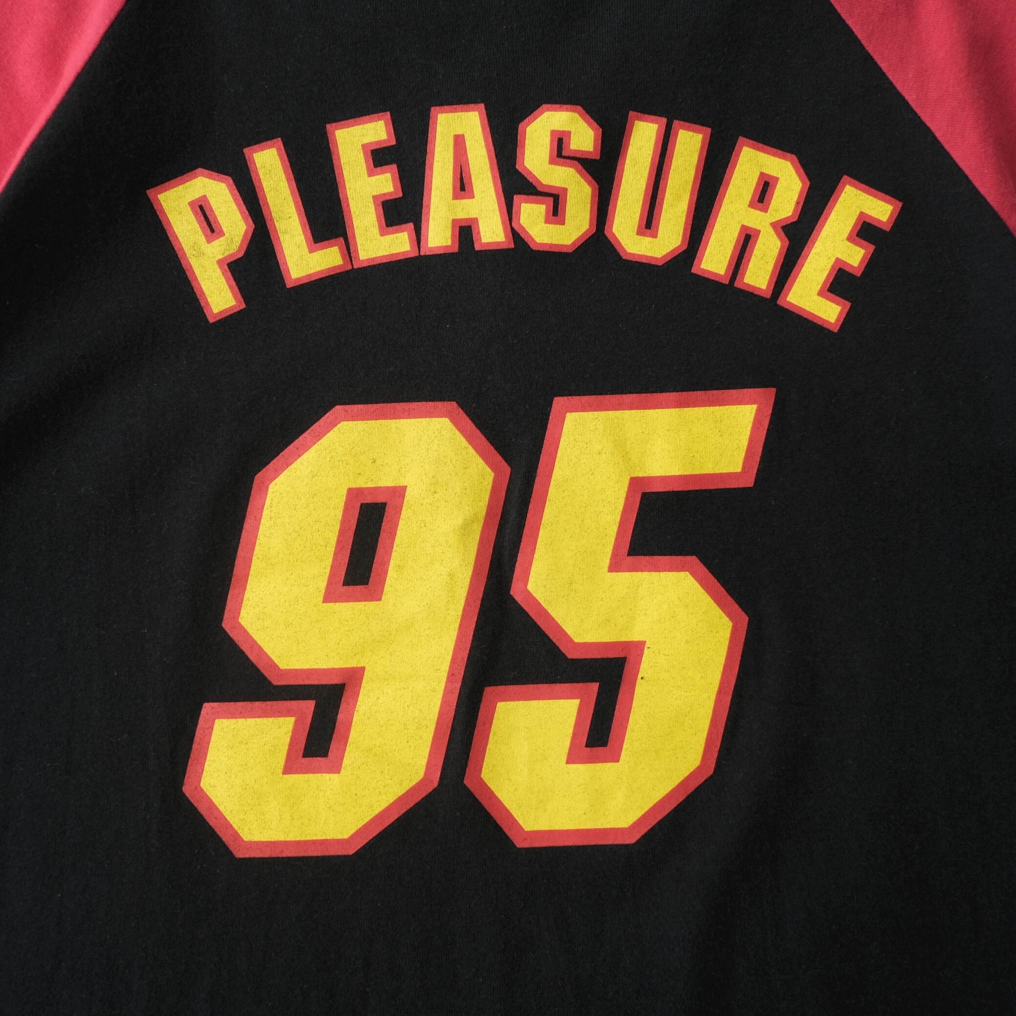 【B'z】90's "BUZZ!!” Live Gym Pleasure ’95 Raglan V-Neck T-Shirt Black Red