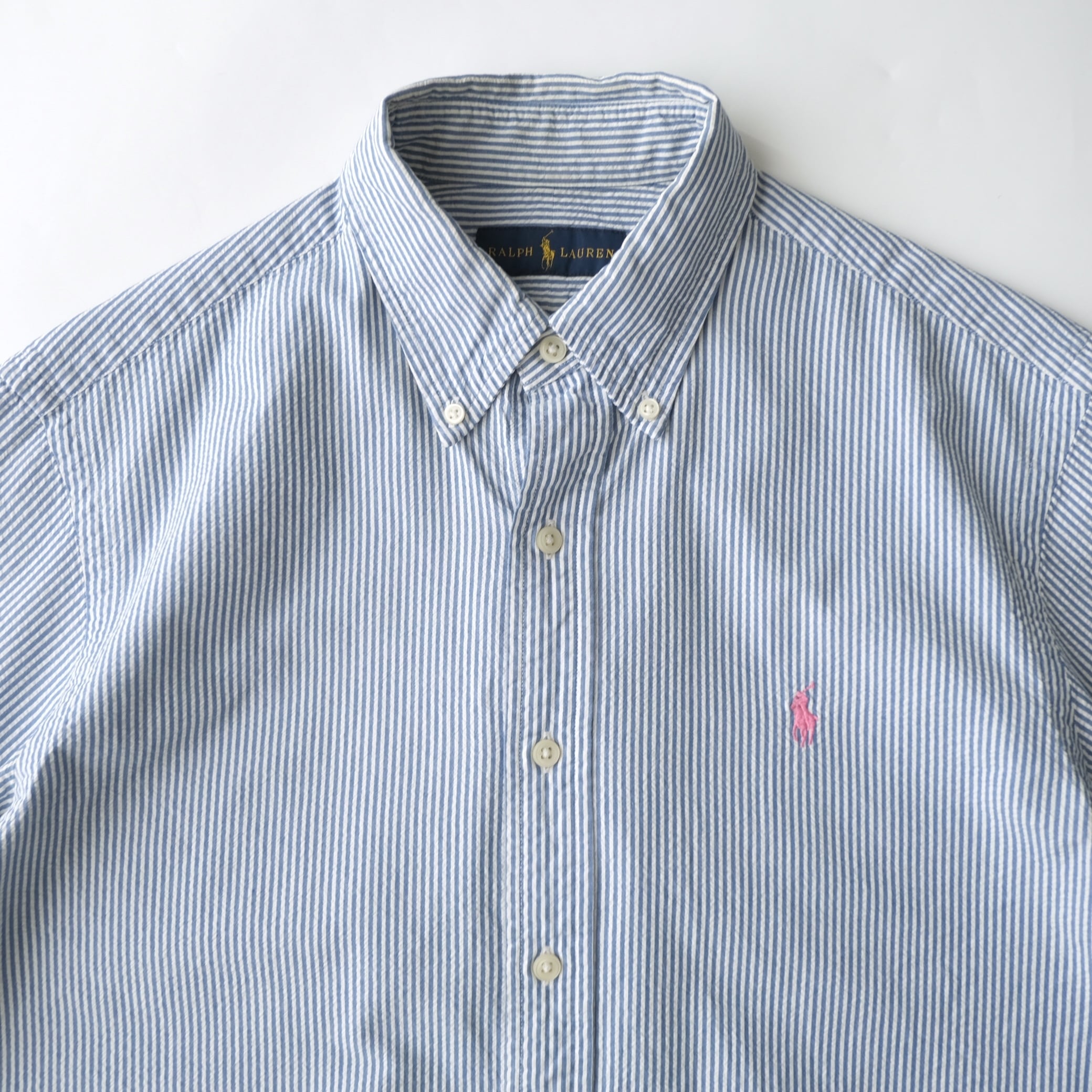 「ラルフローレン」の半袖BDシアサッカーストライプシャツです。