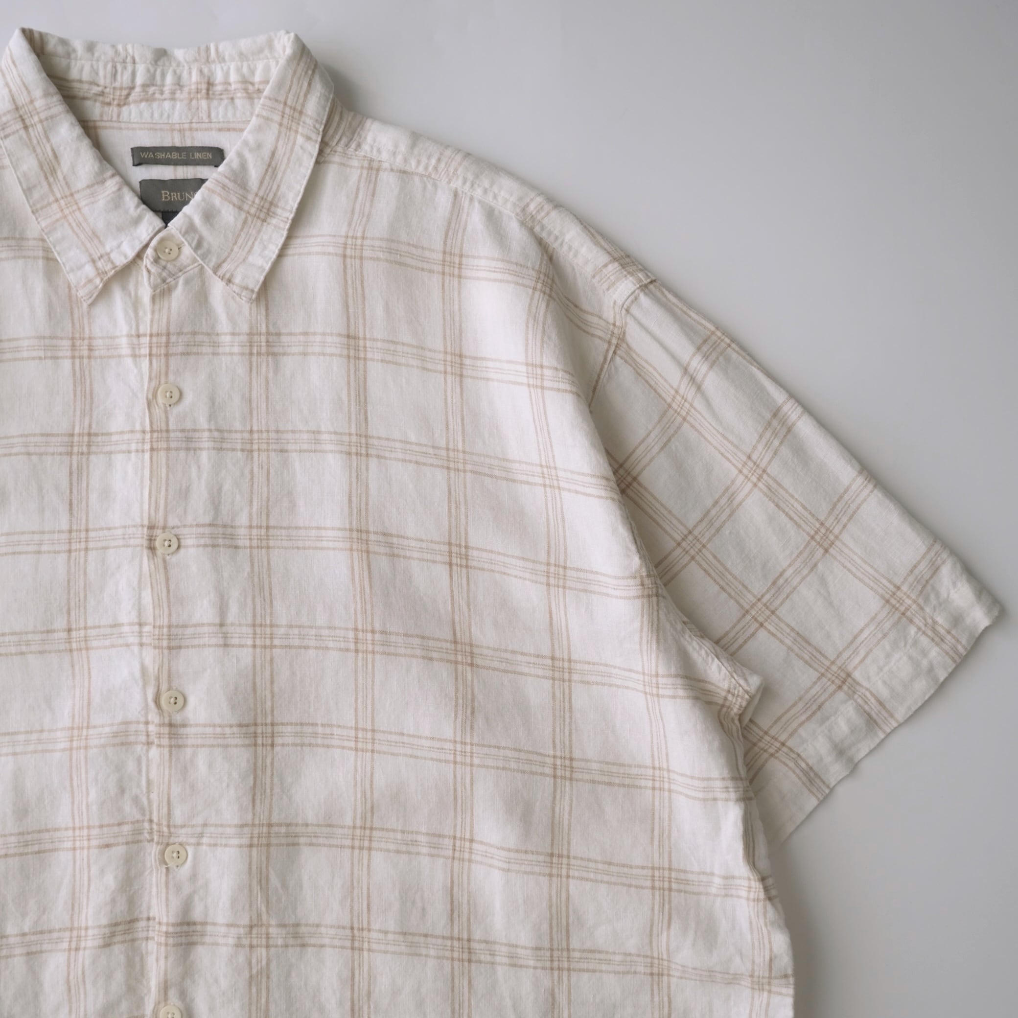 BRUNO」の半袖リネンチェックシャツです。