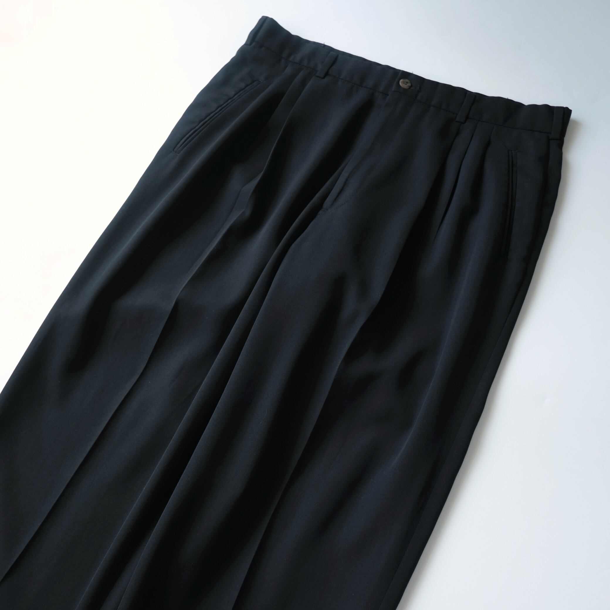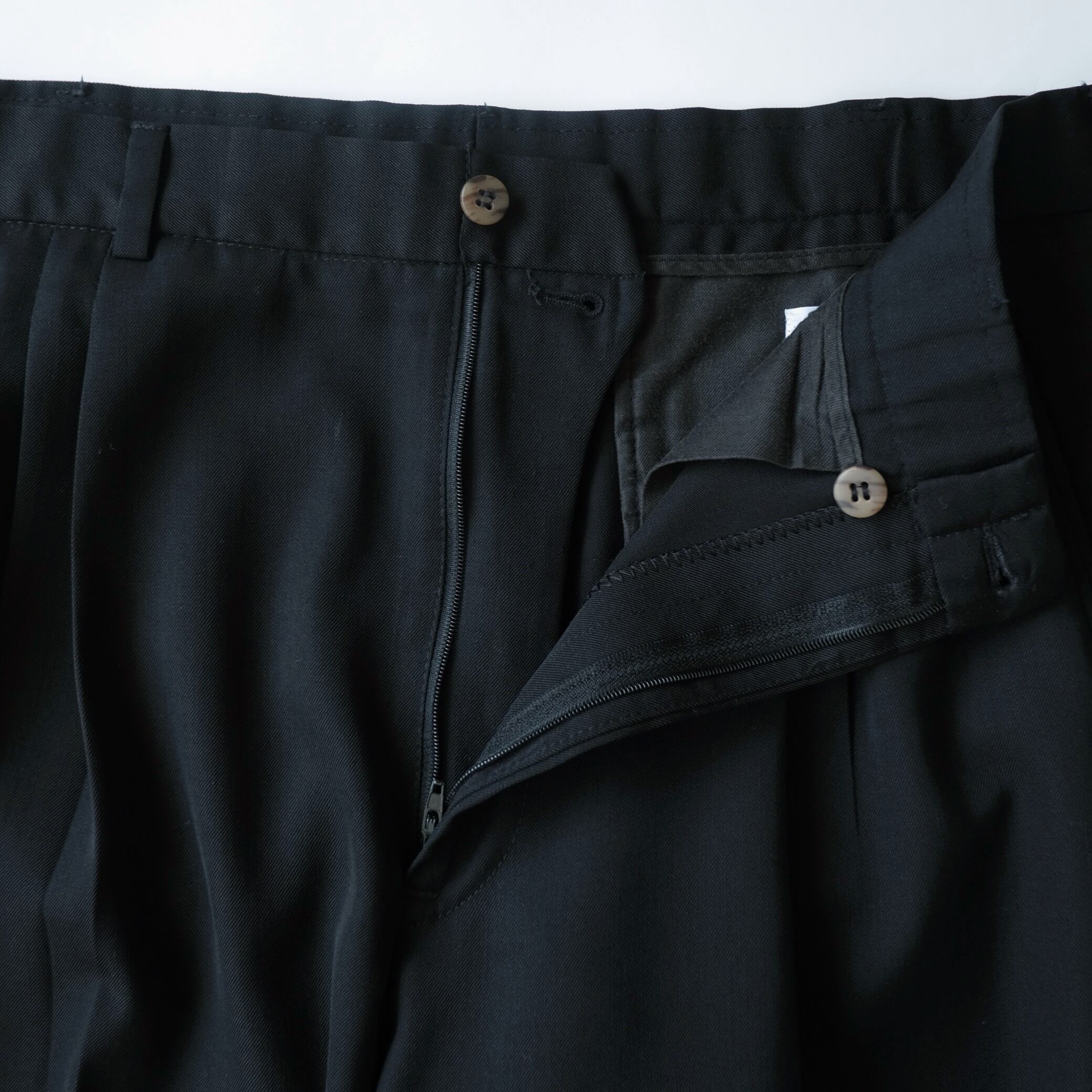 【PERRY ELLIS】90's Three-Tuck Slacks Black 34×30 Made in USA