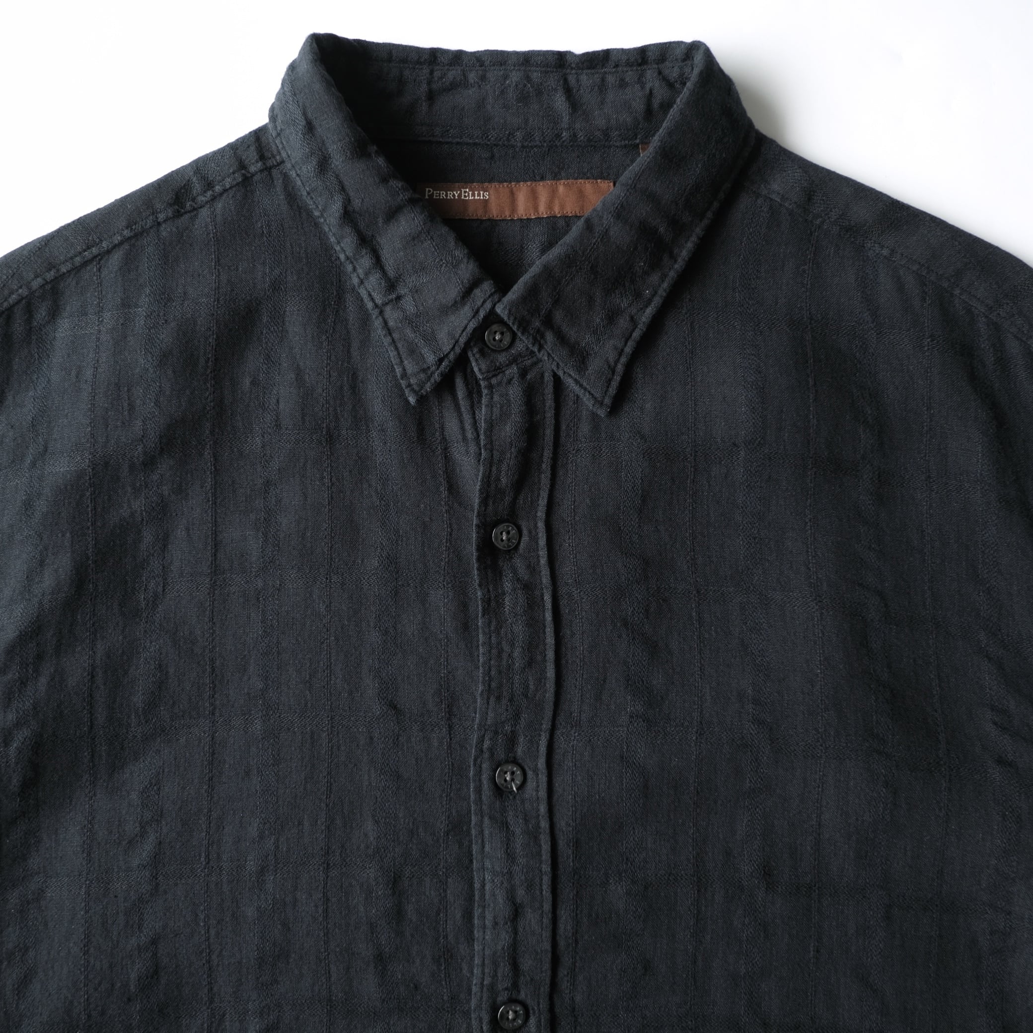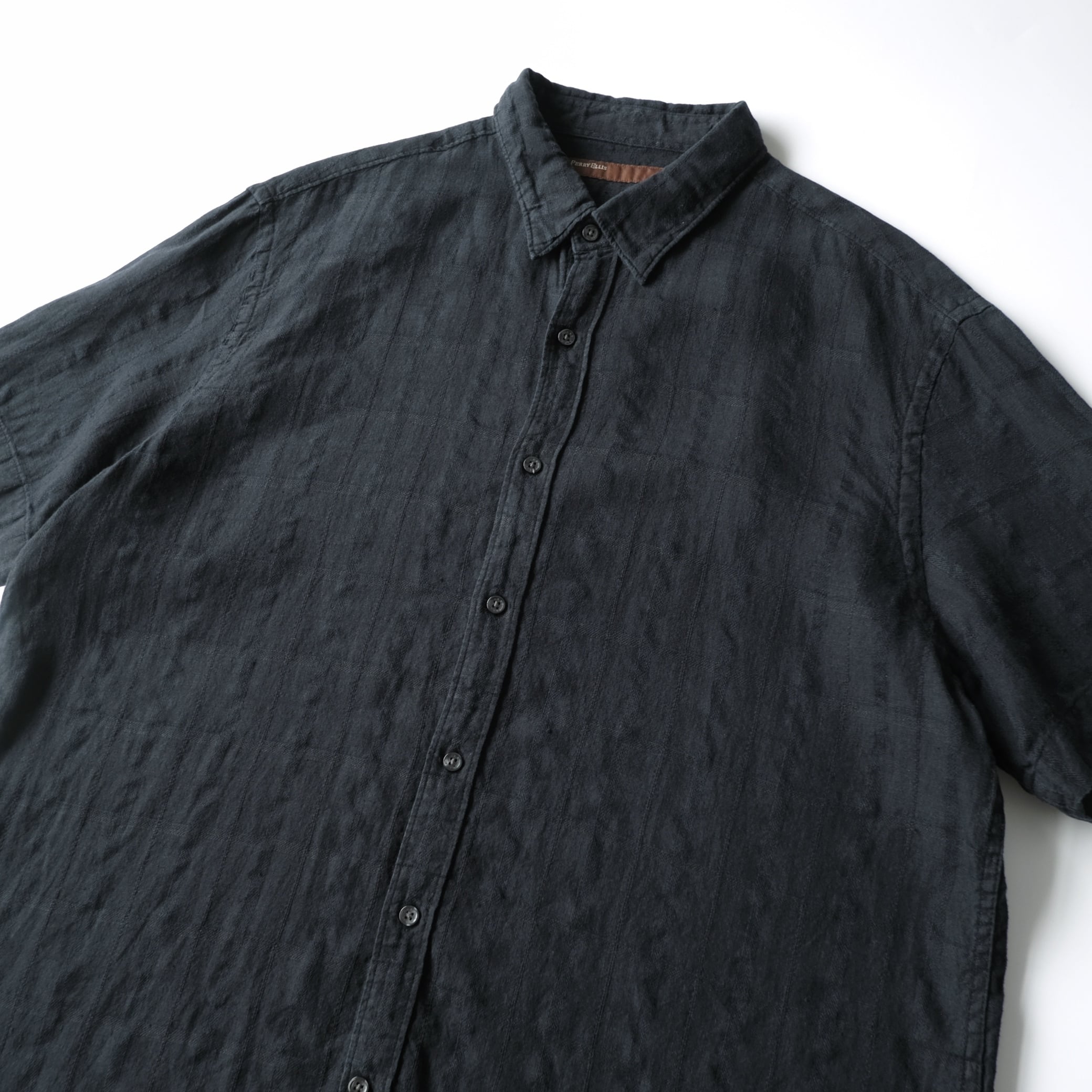 【PERRY ELLIS】00's Linen/Cotton S/S Shirt Black XXL
