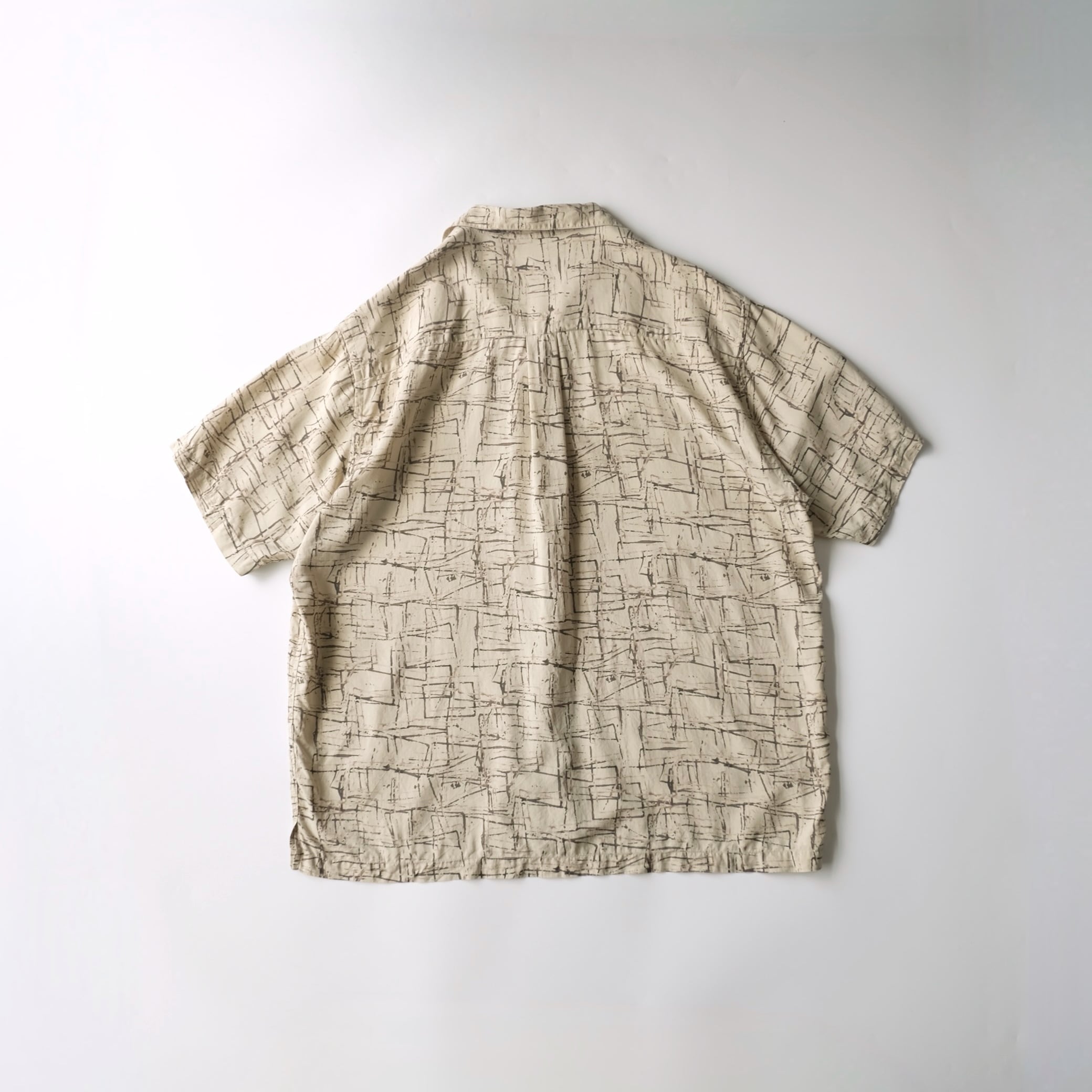 【PERRY ELLIS】90's S/S All-over Print Silk Open Collar Shirt XL