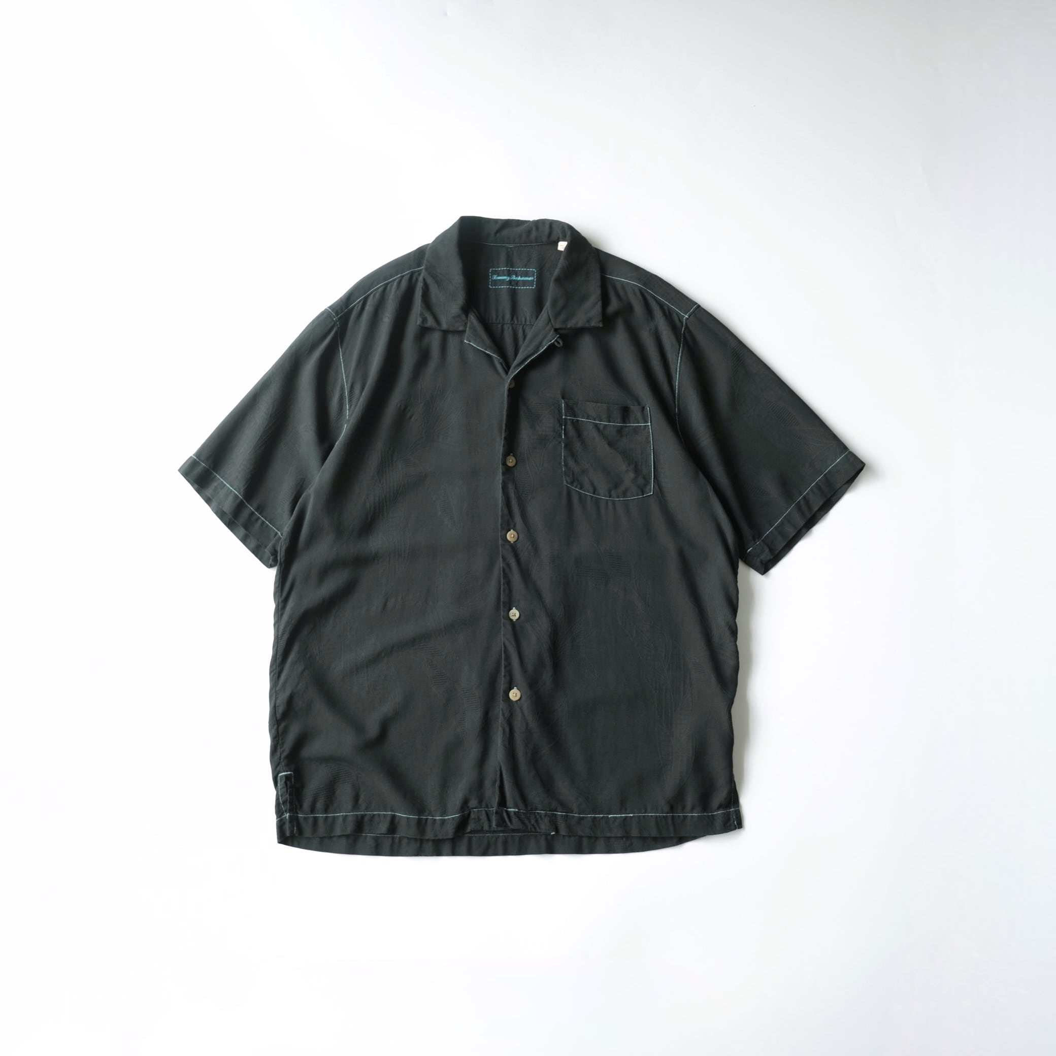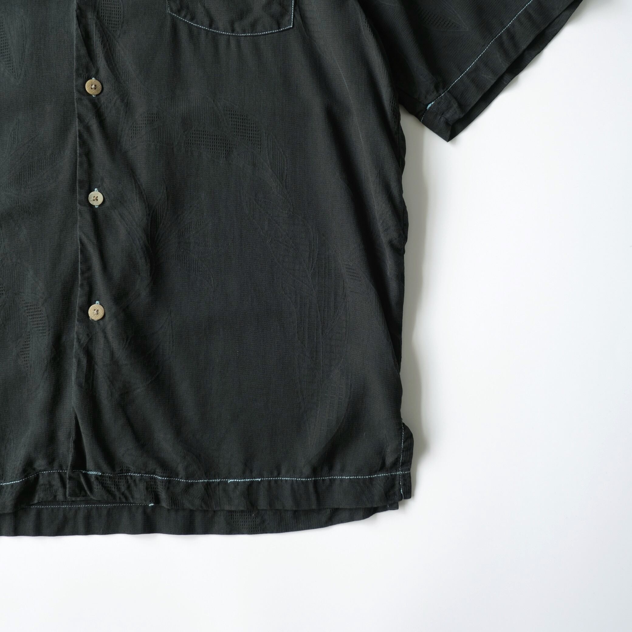 【Tommy Bahama】S/S Open-Collar Silk Shirt Black L