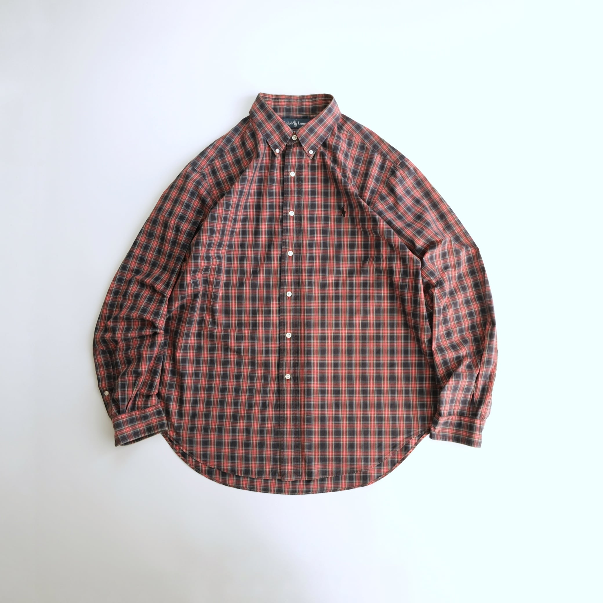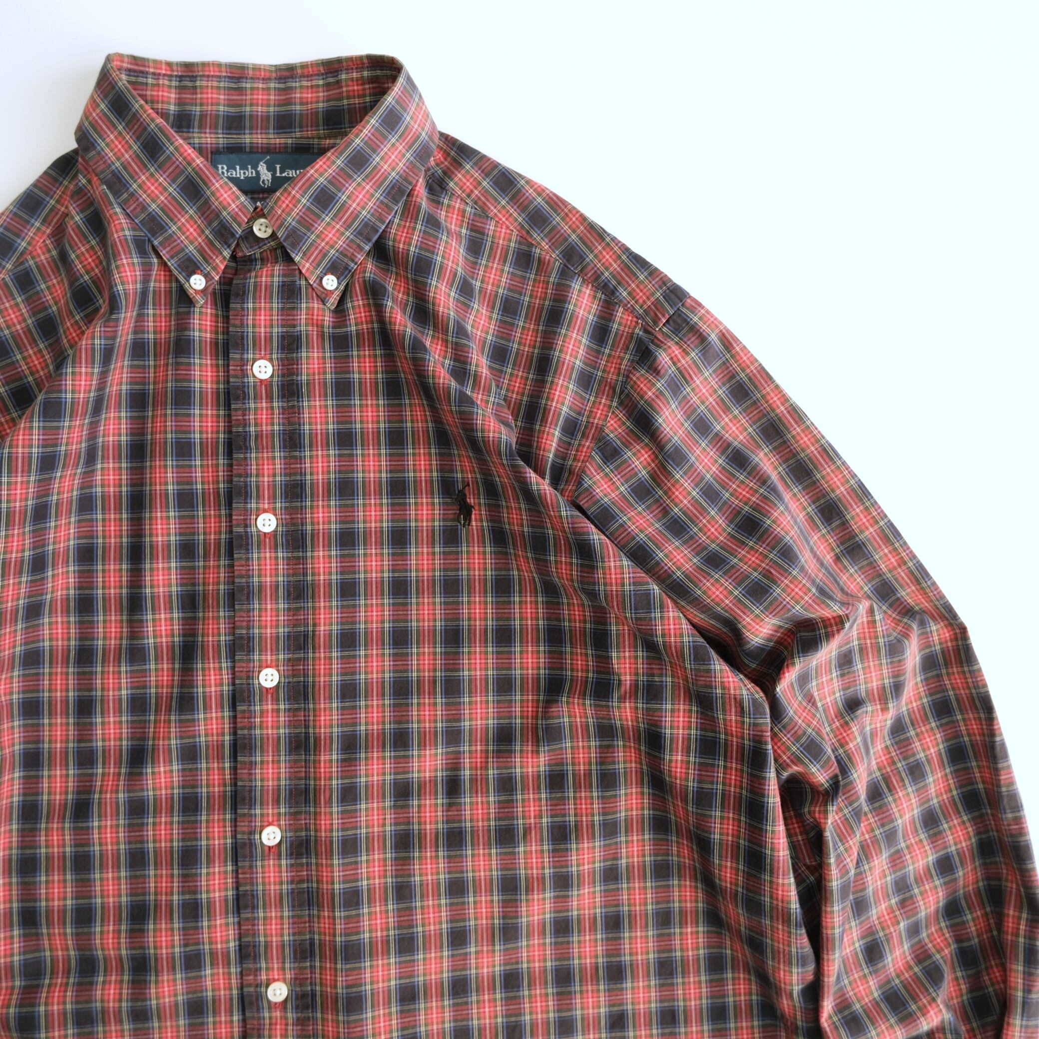 【RalphLauren】刺繍ロゴ 長袖BDチェックシャツ 赤 XL